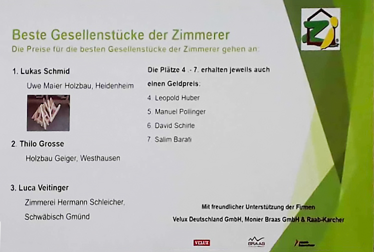 WeiterlesenUnsere Jungs haben dieses Jahr wirklich großartige Ergebnisse erziehlt. Lukas Schmid hat das beste Gesellenstück abgegeben und einen Preis erhalten. Michel Thomas und Niklas Zimmermann erhielten eine Belobigung. Bei Kammerwettbewerb der HWK Ulm am 06.09.2019 hat unser Lukas Schmid den 2. Platz belegt.